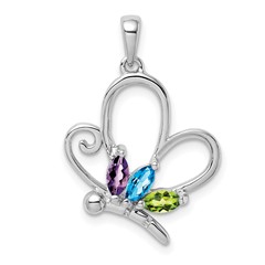 Sterling Silver Rhod-plated Amethyst, BT and Peridot Pendant