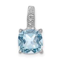 Sterling Silver Rhodium-plated Diamond and Light Blue Topaz Pendant