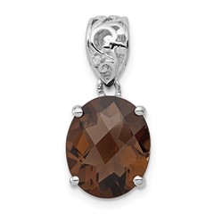 Sterling Silver Rhodium-plated Smoky Quartz and Diamond Pendant