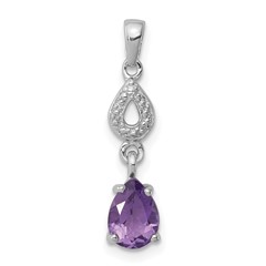 Sterling Silver Rhodium Plated Diamond and Amethyst Teardrop Pendant