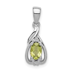 Sterling Silver Rhodium Plated Diamond and Peridot Oval Pendant