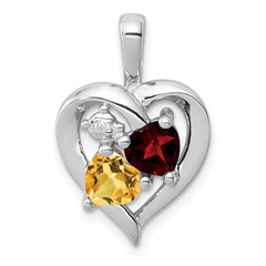 Sterling Silver Rhodium-plated Garnet, Citrine and Diamond Pendant