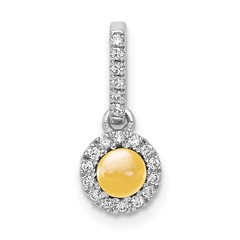 14k White Gold Diamond and Cabochon .47 Citrine Halo Pendant