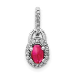 14k White Gold Diamond and Cabochon .60 Ruby Pendant