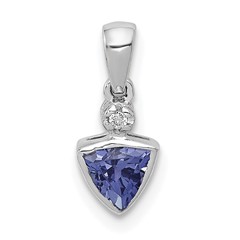 14k White Gold Trillion .90 Tanzanite and Diamond Pendant