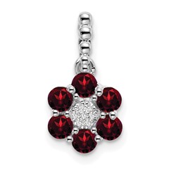 14k White Gold Diamond and Cabochon .47 Garnet Pendant