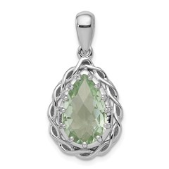 Sterling Silver Rhodium-plated Green Quartz Pendant