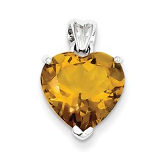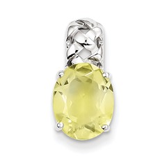Sterling Silver Rhodium-plated Polished Citrine Oval Pendant