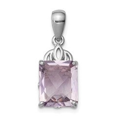 Sterling Silver Rhodium-plated Pink Quartz Pendant