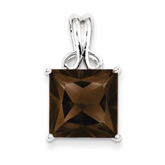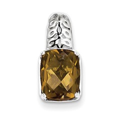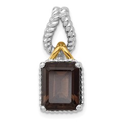 Sterling Silver Rhodium with Flash Gold-plate Accent Smoky Quartz Pendant