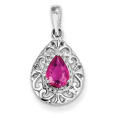 Sterling Silver Rhodium Plated Pink Tourmaline Teardrop Pendant