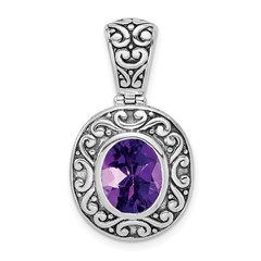 Sterling Silver Antiqued Oval Amethyst Pendant