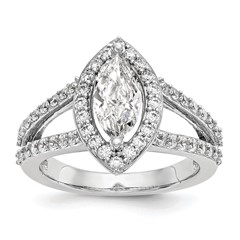 14K White Gold Marquise Halo Engagement Ring Mounting