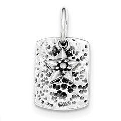 Sterling Silver Antiqued Textured Black CZ Star Dangle Pendant