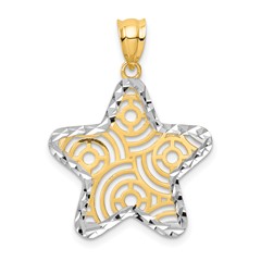 14K and White Rhodium Diamond-cut Star Pendant