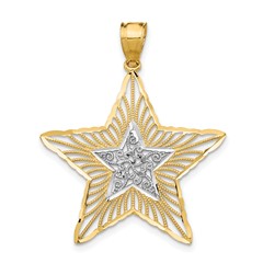 14k with Rhodium Diamond-cut Filigree Star Pendant
