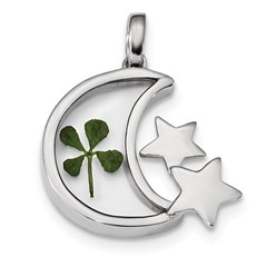 Sterling Silver Plat. Plated Real Clover Epoxy Moon/Stars Pendant