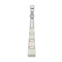 Sterling Silver Rhodium-plated White Created Opal Bar Pendant