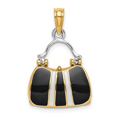 14K 3-D with Black and White Enamel Moveable Handbag Charm