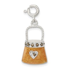Sterling Silver Rhodium-plated 3-D Enameled Purse with Lobster Clasp Charm