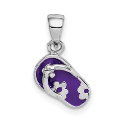 Sterling Silver Rhodium-plated Childs Enameled Purple Flip Flop Pendant