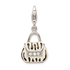 Sterling Silver RH Click-on CZ Enamel Zebra Purse Charm