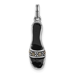 Sterling Silver Black Enamel and Marcasite Shoe Charm