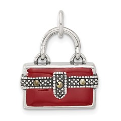 SS RH Blk Enamel Polished with Marcasite Shoe with Lobster Clasp Charm