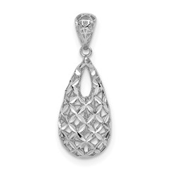 Sterling Silver Rhodium-plated D/C Hollow Tear Drop Pendant