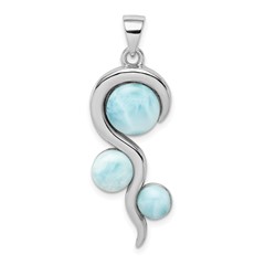 Sterling Silver Rhodium-plated Larimar Swirl Design Pendant