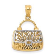 14K with Rhodium 2-D Textured and Polished Purse Charm