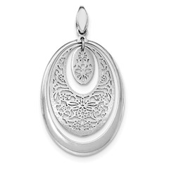 Sterling Silver Rhodium-plated Brushed/Polished Oval Pendant