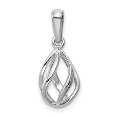 Sterling Silver Rhodium-plated Polished Teardrop Cage Pendant
