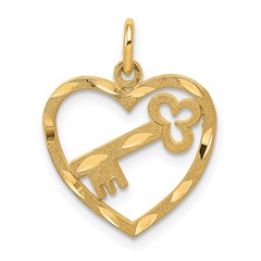 14K Polished D/C Key in Heart Charm
