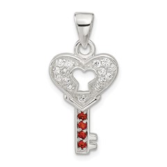 Sterling Silver CZ Heart Key Pendant