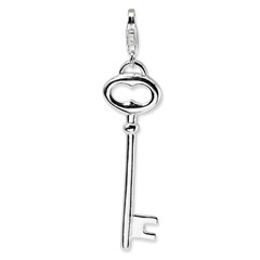 Sterling Silver Polished Open Oval Heart Key with Lobster Clasp Charm
