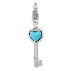 Stainless Steel Polished Imitation Turquoise Heart Key with Lobster Clasp C