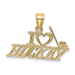 14k I love hockey charm