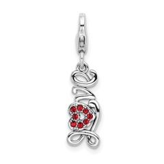 SS Rhodium-Plated Red Swarovski Love with Lobster Clasp Charm