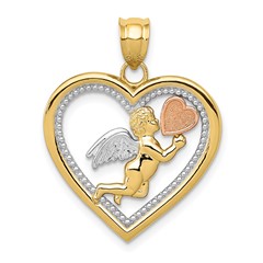 14K Yellow, Rose and Rhodium Angel Heart Pendant