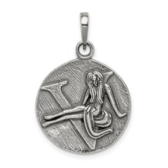 Sterling Silver Polished Antique Finish Virgo Horoscope Pendant