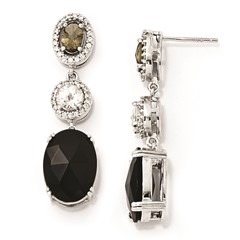 Sterling Silver CZ Onyx and Smokey Glass Post Dangle Earrings