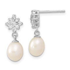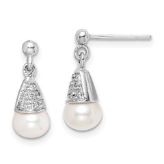 Sterling Silver Rhodium-plated 6-7mm Wt Rice FWC Pearl CZ Post Dangle Ear