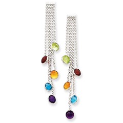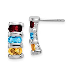 Sterling Silver Rhodium-plated with Garnet, Blue Topaz and Citrine Post Earrin
