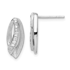 Sterling Silver Rhodium-plated Scratch Finish CZ Post Earrings
