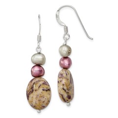 Sterling Silver Charoite and FW Cultured Pearl Earrings
