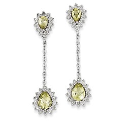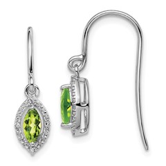Sterling Silver Rhodium Plated Diamond Peridot Marquise Earrings