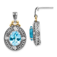 Sterling Silver with 14k Diamond and Blue Topaz Earrings