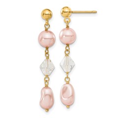 Gold-plated Kelly Waters Pink Simulated Pearl and Crystal Drop Earrings