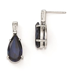 Cheryl M Sterling Silver AAA CZ/Syn. Sapphire Teardrop Post Dangle Earrings